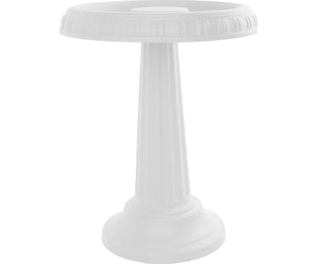 The Grecian Bird Bath draws birds right into the backyard. Features a raised platform for birds to rest on or to display a small flower pot or sculpture. Two piece design, easy assembly, and no tools needed. Fill base with sand or water for added stability year-around. Includes bird bath, pedestal, base plate, and bag of push nuts.