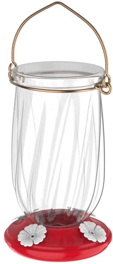 - 22-ounce capacity plastic hummingbird feeder