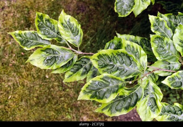This striking, hard-to-find shade tree has crinkly leaves with medium green centers and wide, wavy chartreuse edging. Variegation is more consistent than some other yellow/green cultivars. A relatively fast grower. Fagus sylvatica bicolor sartini