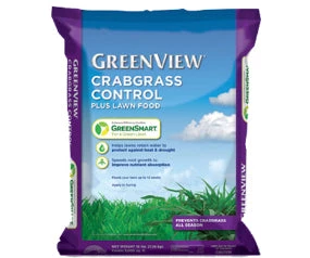 GreenView Crabgrass Control Plus Lawn Food is an eco-improved fertilizer with GreenSmart. GreenView with GreenSmart products increase the efficiency of nutrient absorption to promote deeper, stronger roots to help grow a healthy, vibrant green, drought-resistant lawn. Prevents Crabgrass all season