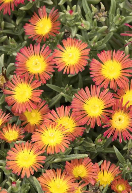 Super-sized, vibrant orange and yellow blooms to enjoy all summer and into fall. Succulent foliage spreads to form a dense mat, making a tough, drought tolerant groundcover or rock garden accent. Thrives in container plantings, spilling gently over the edges. Evergreen in mild winter climates.