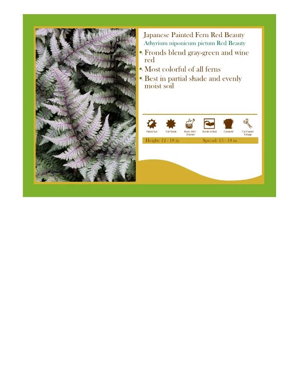 Add a spark of deep burgundy red to your garden’s shady nooks with the bright hues of this handsome and hardy Japanese Painted Fern. The fronds have a blush of color along their midrib against a gray-green background.