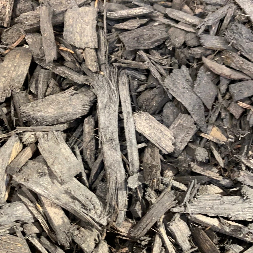 Black dyed is a double ground hardwood bark mulch that is dyed black. It is a solid choice for weed control around your home with a darker color than our plain bark mulch.