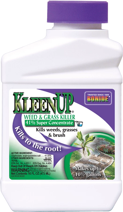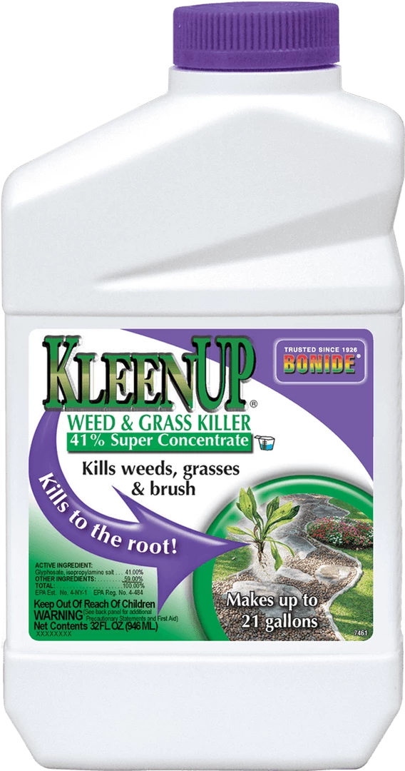 Tough, fast-acting, waterbased formula of systemic 1.92% glyphosate plus surfactant. Kills all green plants, roots and all. Use around walks, driveways, flower beds, shrubs and trees. Contains “See Spray” non-staining blue marker dye.