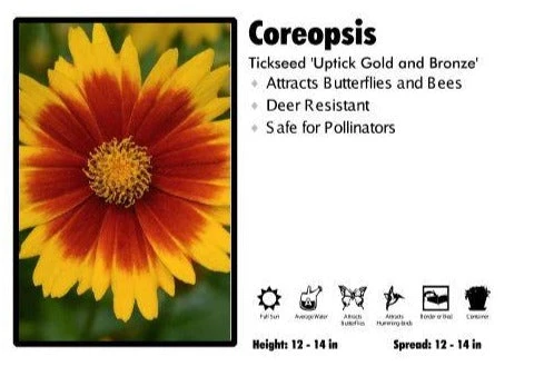 Be the first to review “Pandy’s Garden Center Coreopsis ‘Uptick Gold And Bronze’ Tickseed” Cancel reply