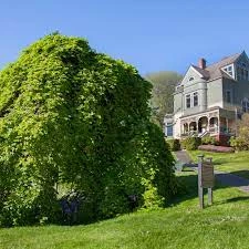 Camperdown is a weeping elm tree with gorgeous twisted branches and dense foliage. Camperdown elm information tells us that the tree only grows to 25 feet (7.6 m.) tall, but can spread even wider than its height. The tree you’ll find in commerce in this country is generally a Camperdown weeping elm crown grafted to an Ulmus americana rootstock. Camperdown elm information gives you an idea of why the tree is so popular. Its crown is domed and dense, and the twisted, root-like branches, thick with green foliage, droop to the ground if left unpruned. In spring, Camperdown weeping elm trees are covered with blossoms. Although the flowers are small and, individually, insignificant, many of them appear at the same time. When the entire dome is covered, the plant turns from dark green to light, silvery green.
