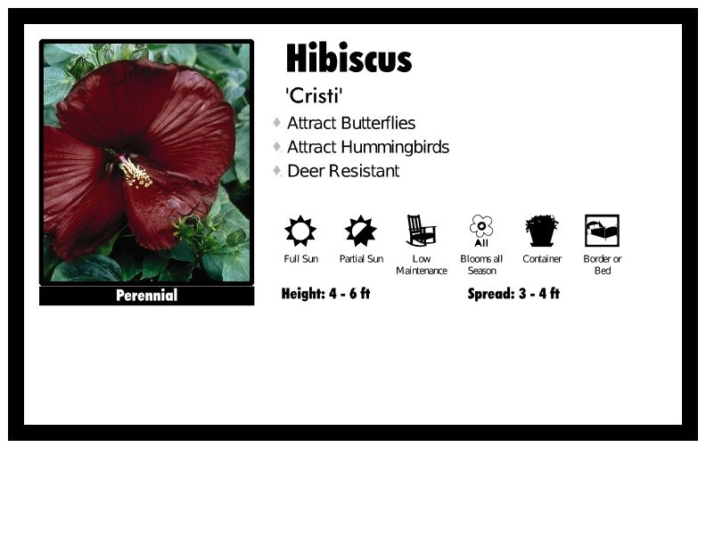 Be the first to review “Pandy’s Garden Center Hibiscus ‘Cristi’ Perennials” Cancel reply