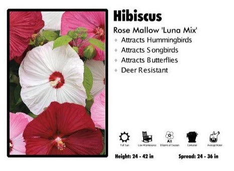 And what a terrific variety it is, with 8-inch flowers that swirl open each morning in luscious shades of red, rose, white, and a swirl of lilac-pink-white. Altogether an easy and very, very heavy-blooming sun-lover, it is icing on the cake that this native perennial is beloved by hummingbirds and shunned by deer!