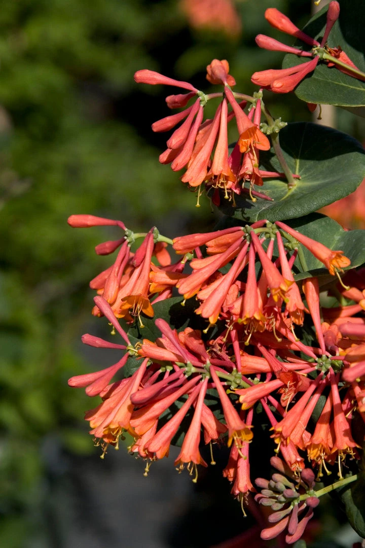 Long blooming season of showy tubular flower clusters backed by attractive blue green foliage. Handsome, dense vine for fences, arbors, even as a groundcover. Long lasting red berries follow the blooms. Deciduous.