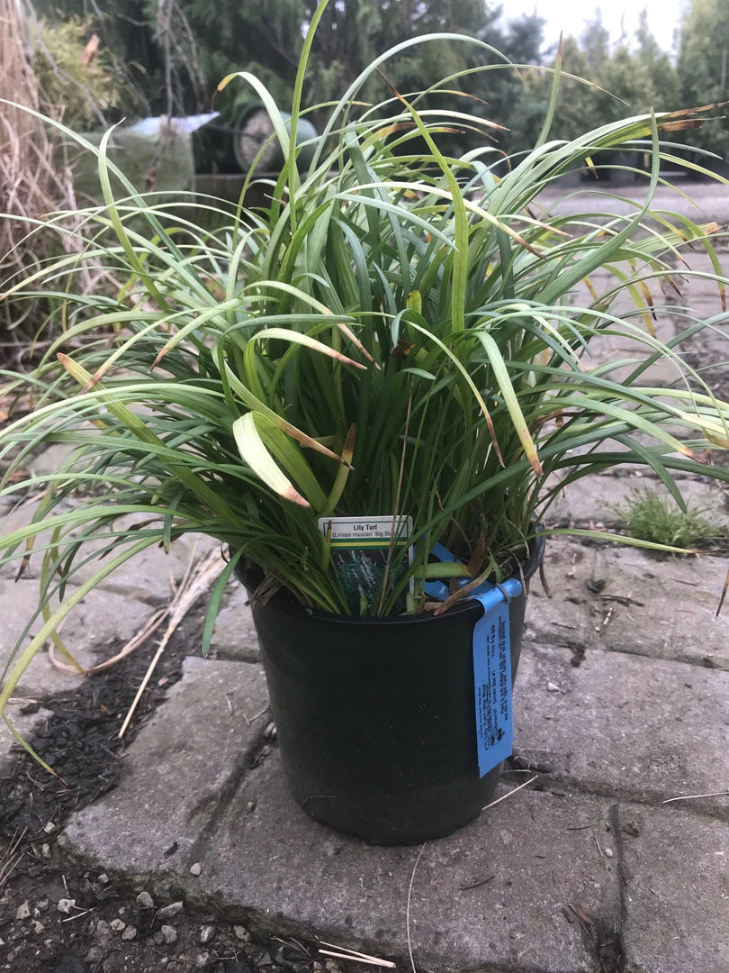 Liriope muscari, commonly called lilyturf or blue lily turf, is a tufted, tuberous-rooted, grass-like perennial which typically grows 12-18″ tall and features clumps of strap-like, arching, glossy, dark green leaves (to 1″ wide). Clumps slowly expand by short stolons, but do not spread aggressively like Liriope spicata. Erect, showy flower spikes with tiered whorls of dense, violet-purple flowers rise above the leaves in late summer. Flowers give way to blackish berries which often persist into winter.