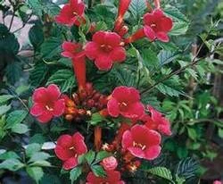 The abundant sprays of trumpet-shaped red flowers and dark green leaves cover this deciduous vine for an extra long bloom season from early summer to early fall. The leaves will turn yellow in the fall. The rapid growth makes training easy and is excellent for covering fences or an arbour. Minnesota Red Trumpet Vine is deer resistant, makes a great cut flower, and is a Firewise plant.