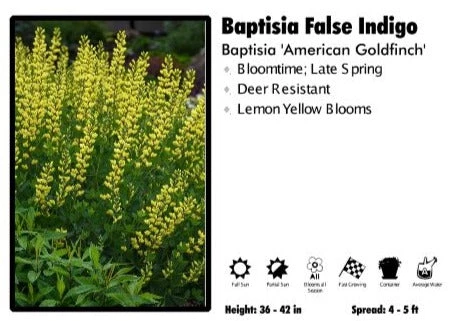 Be the first to review “Pandy’s Garden Center Perennials Baptisia ‘American Goldfinch’ False Indigo” Cancel reply
