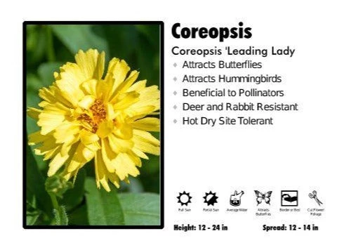 Be the first to review “Pandy’s Garden Center Perennials Coreopsis ‘Loading Lady’ Tickseed” Cancel reply