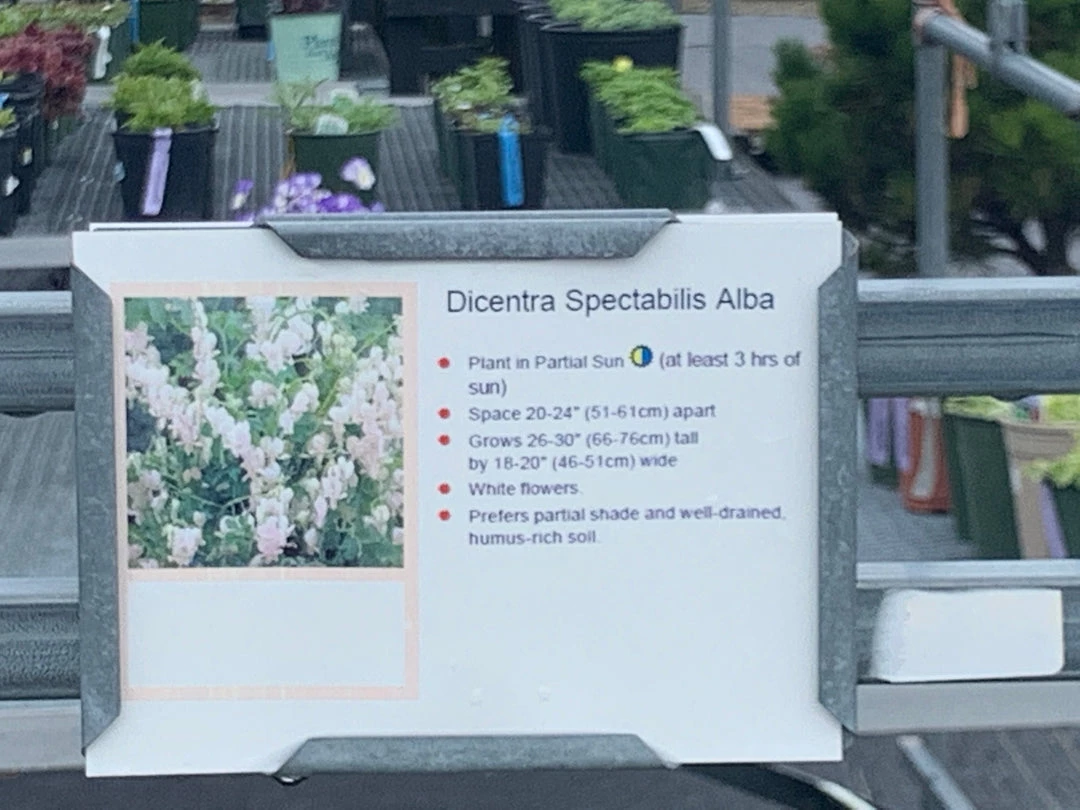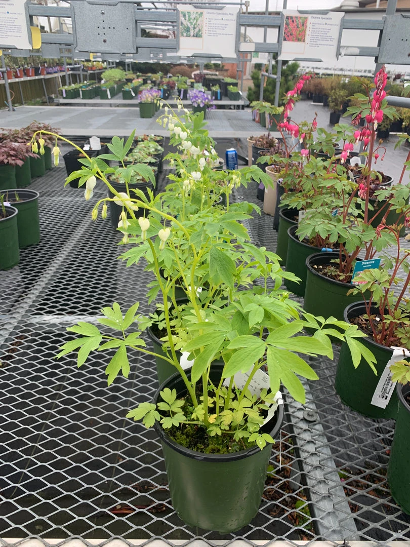 Every bit as charming as the pink form, ‘Alba’ forms large, bushy clumps of powdery-light green foliage comprised of cut or lobed leaves on fleshy stems. In late spring, chains of puffy, white, heart-shaped flowers dangle beneath the arching, leafless stems. These racemes make delightful additions to fresh bouquets, lasting about 2 weeks in a vase. In cooler climates with adequate moisture, the bloom time may be extended into early summer.