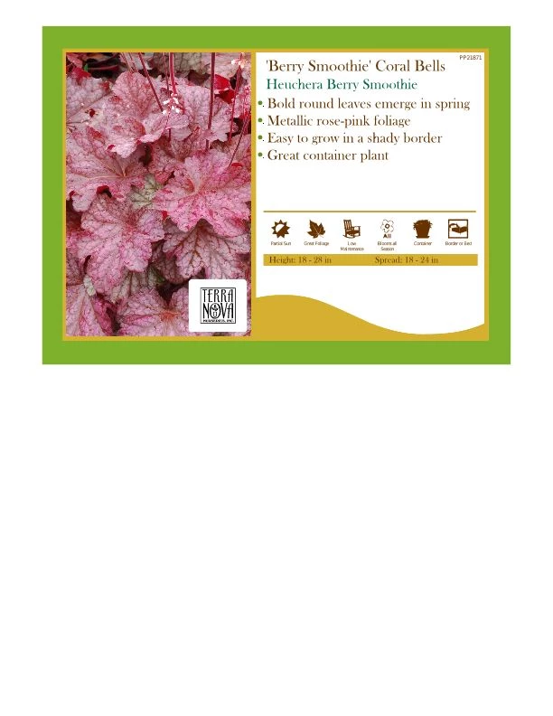 Brilliant raspberry-toned metallic foliage darkens to purple pink in summer. A refreshing see-through edger, the airy tall sprays of white bells allow a view of the plants behind. Impressive heat and humidity tolerance.