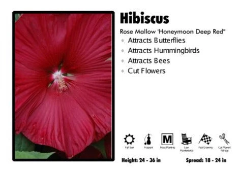 Honeymoon™ Deep Red Hibiscus is an herbaceous perennial with an upright spreading habit of growth. Its relatively coarse texture can be used to stand it apart from other garden plants with finer foliage.