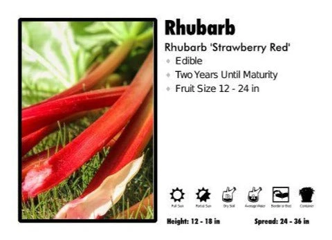 Large, sweet, juicy red stalks retain their color when cooked. An easy to grow perennial that will be a reliable performer for years to come. Be sure to use only the stem, Rhubarb leaves are not edible.