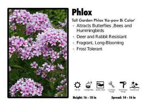 Garden Phlox add a pleasing vertical accent to the summer border. When most plants are their summer siesta; Garden Phlox, known as the ‘backbone’ of the perennial border, provide a range of welcome color.