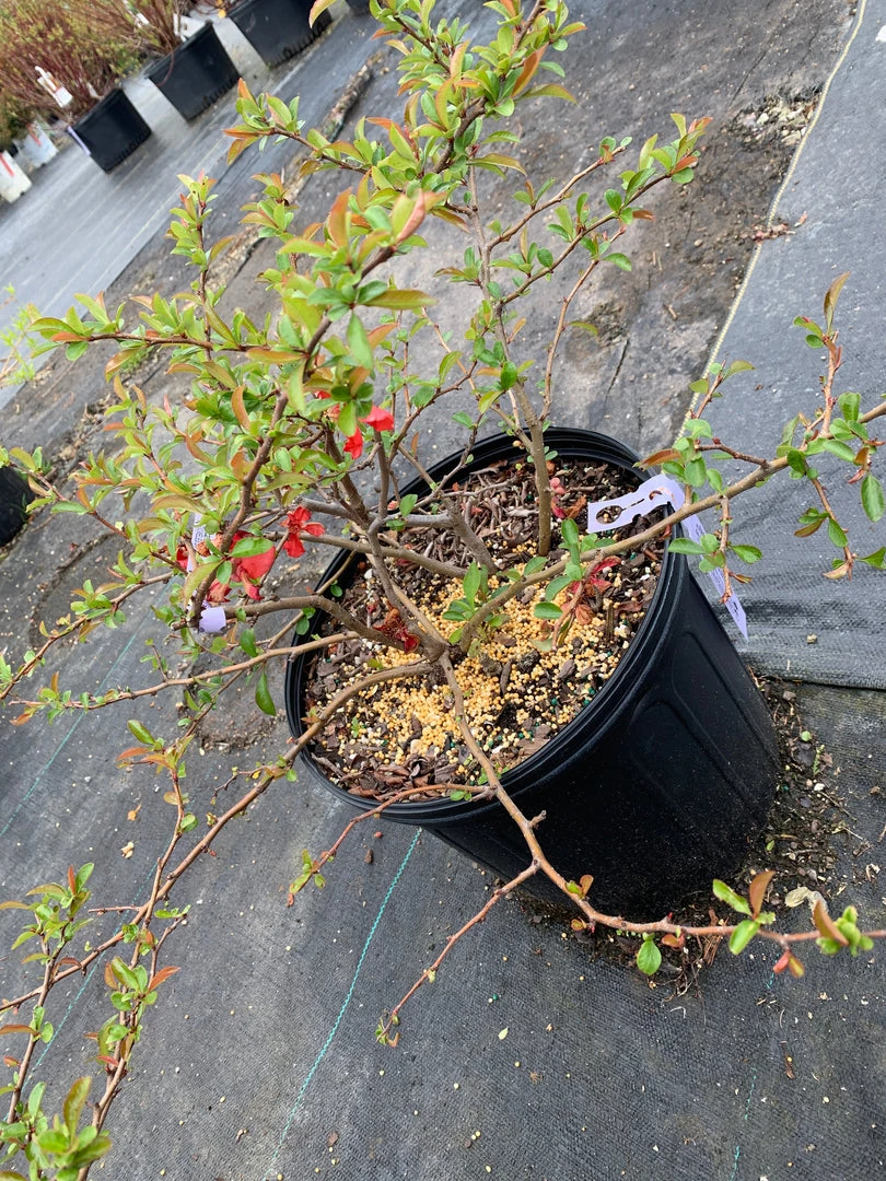 Japanese Flowering Quince is a low-growing, thorny shrub that stays compact. It features a picturesque growth habit, and wonderful interlaced branch structure. Use these beautiful branches in your cut flower arrangements spring, summer and fall!