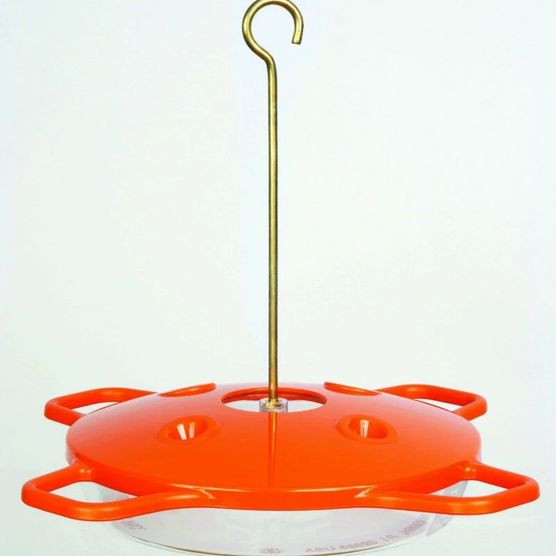- Four feeding ports, four jelly cups and a spiked hanging rod (for skewering orange halves) attract orioles like no other feeder