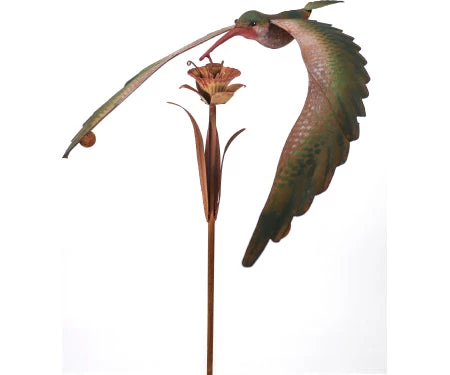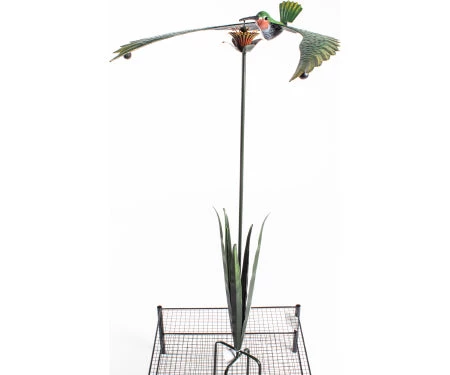 This kinetic hummingbird will be the centerpiece of any landscape. 21.5″ W x 15.7″ D x 44″ H.
