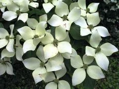 The ‘Milky Way’ is a beautiful variety of the kousa dogwoods. It differentiates itself by flowering a large quantity of creamy white blooms in early summer and produces bright red, edible, berries in the fall. It is said that the cultivar got its name because the flowers in bloom emulate the billions of stars in the milky way galaxy clustering, swirling, and appearing in abundance, and this is definitely what we have seen from it here at the nursery.
