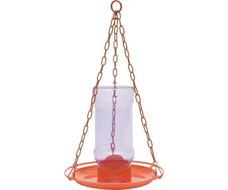 Perky-pet, oriole jelly feeder, open design makes feeder easy to clean, built-in stirrer allows for easy jelly dispensing, jelly stays fresh & dry inside the inverted jelly jar, included jar can be interchanged with most jelly jars, orange color attracts orioles to your yard, includes a convenient hanging chain, included bottle holds up to 32 oz of jelly.